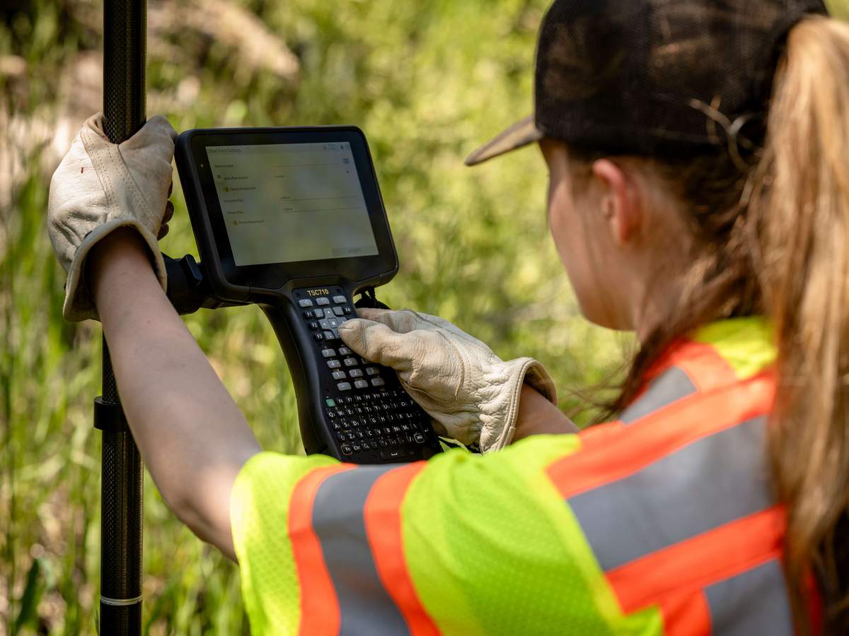 Der sonnenlichttaugliche 5-Zoll-Touchscreen bietet einen klaren Überblick über all Ihre Daten. Mit einem Ganztagesakku und optionalem Zusatzakku können Ihre Messteams ohne Unterbrechung arbeiten und Projekte schneller und effektiver abschließen.